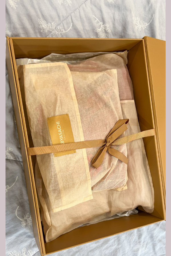 Description: A timeless Sabyasachi red saree crafted in sheer fabric, adorned with intricate golden buti embroidery all over and finished with a heavily embroidered border. A perfect blend of elegance and tradition, ideal for weddings and grand celebrations.