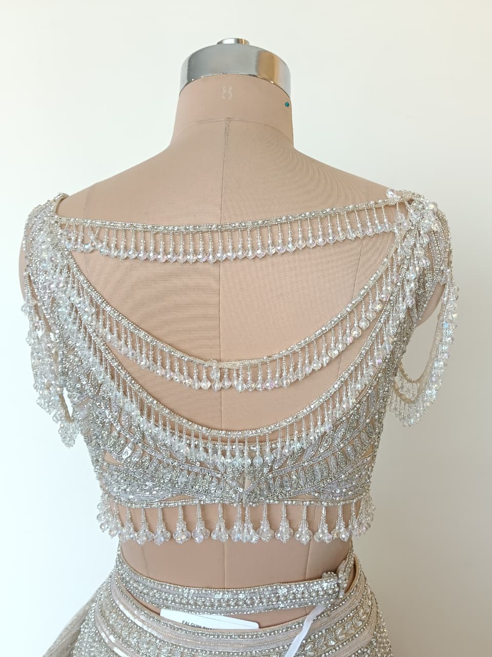 Description: Exquisitely crafted with shimmering embellishments, this lehenga set showcases signature Falguni Shane Peacock detailing, complemented by a modern blouse and delicately draped dupatta.