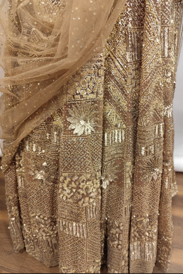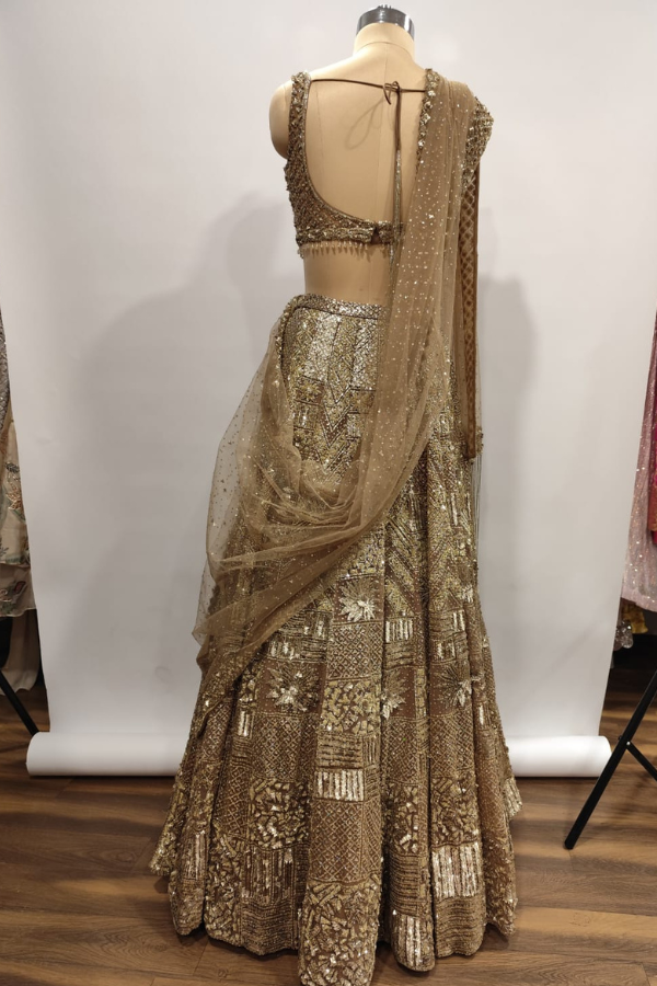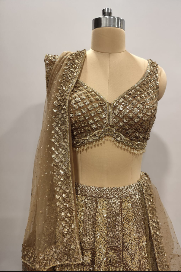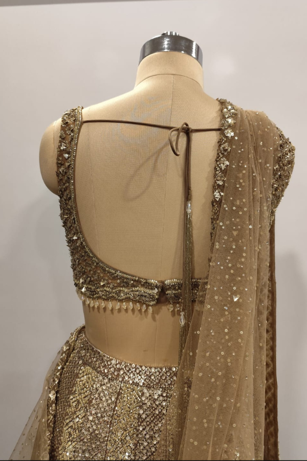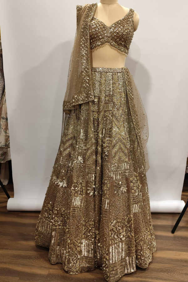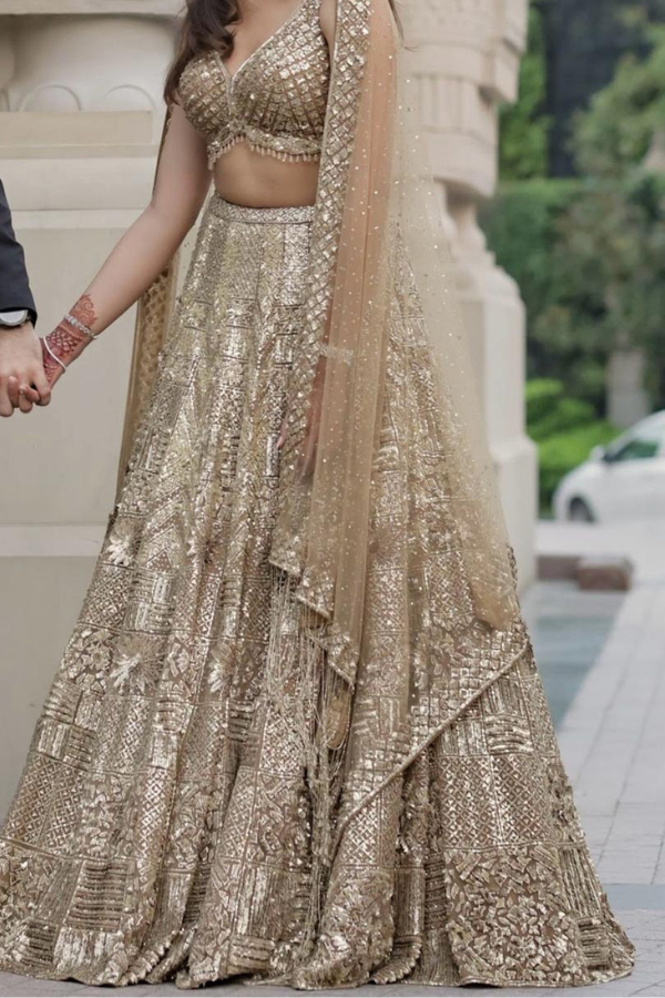 Measurements: Blouse length - 13 inch, Lehenga length - 44 inch, Front neck depth - 10.5 inch
