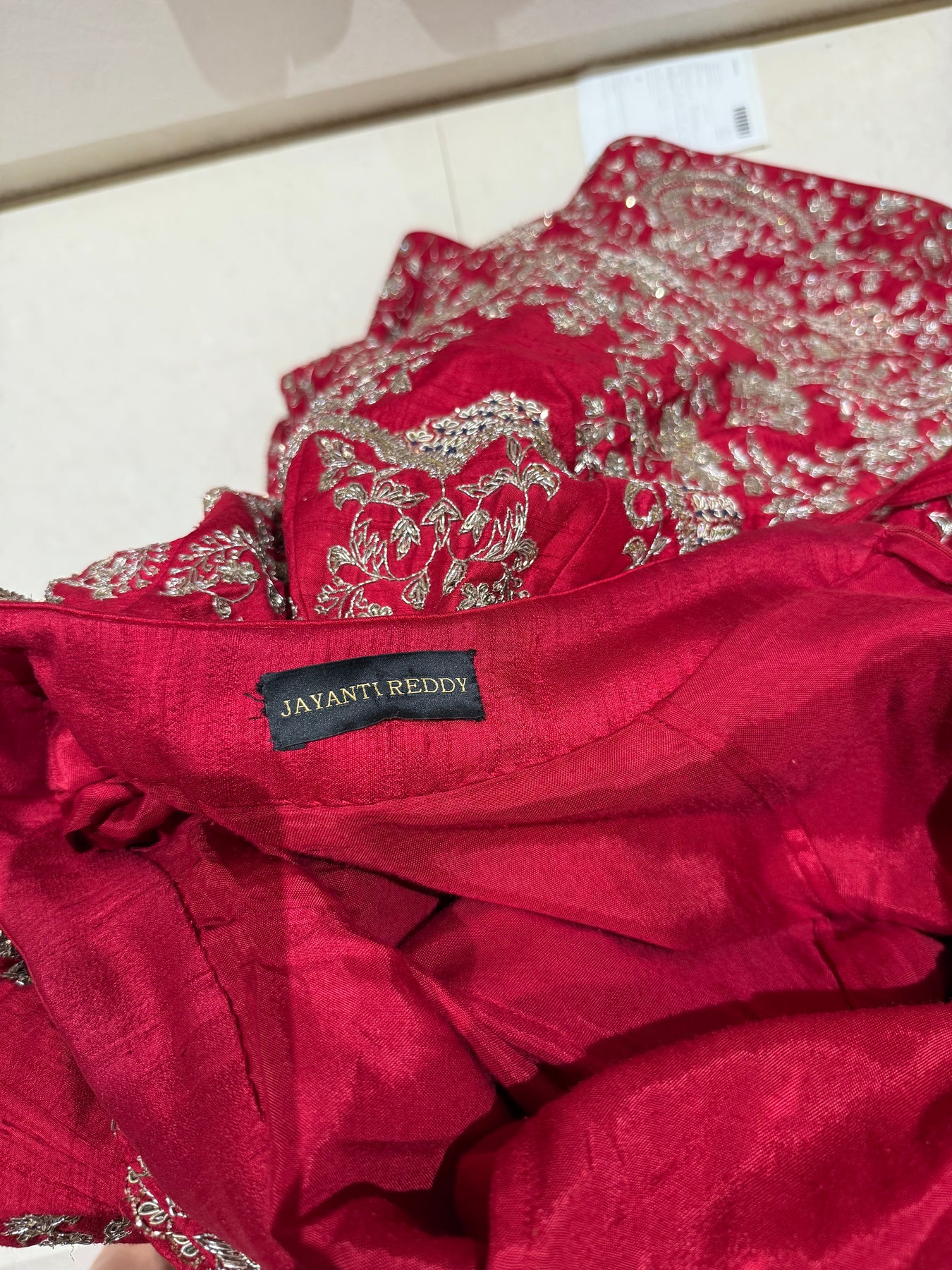 Description: A striking scarlet red lehenga set adorned with intricate silver hand-embroidery, featuring a beautifully embellished V-neck blouse and a matching dupatta with ornate scalloped detailing. This set blends traditional craftsmanship with a bold, regal colour—perfect for weddings, sangeets, and grand celebrations. And it's never been worn, new in condition.