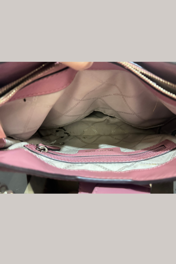 Description: A chic polished leather tote in a blush pink hue, featuring signature pyramid hardware and a sleek chain strap — the perfect blend of elegance and everyday functionality.