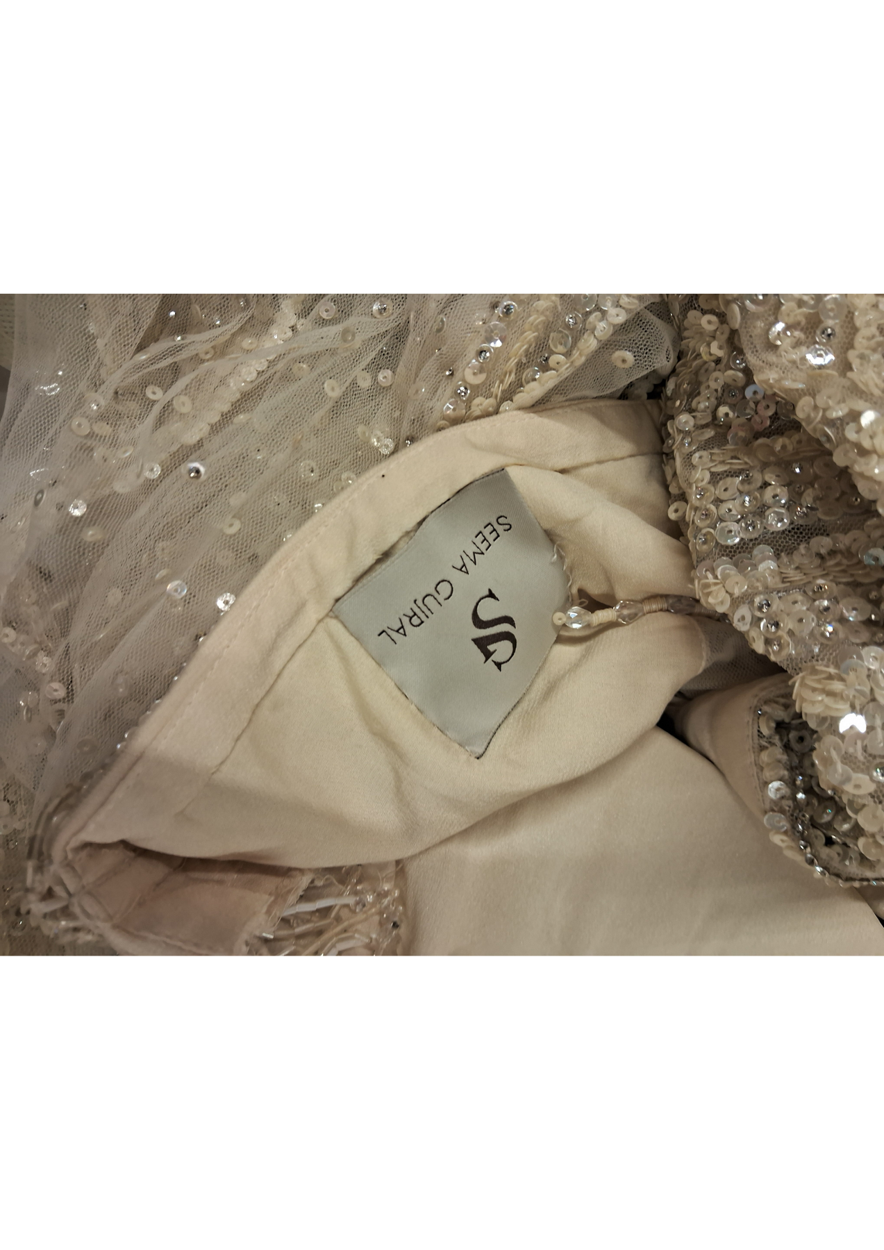 Description: A stunning Seema Gujral lehenga set, intricately embellished with all-over sequins, crystals, and beadwork. The ensemble features a heavily embroidered sleeveless blouse, a flared lehenga skirt, and a matching sheer dupatta — perfect for glamorous evening occasions and festive celebrations.