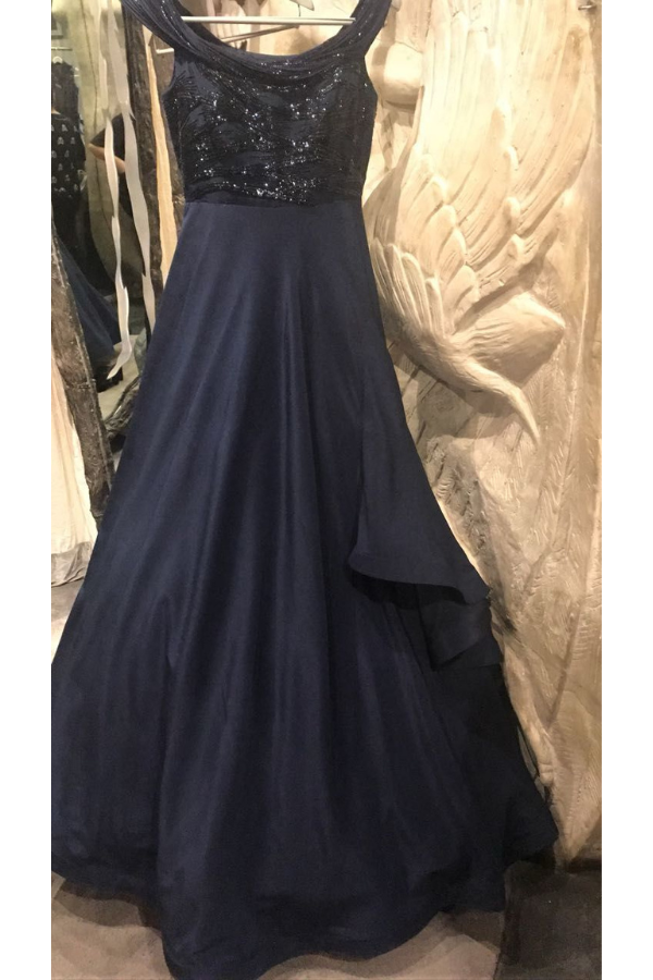 Description: A blue gown by Gaurav Gupta, featuring his signature dramatic silhouettes. The design exudes futuristic elegance with fluid lines, a structured bodice, and a bold, statement-making presence. Perfect for red carpet or high-fashion soirées.