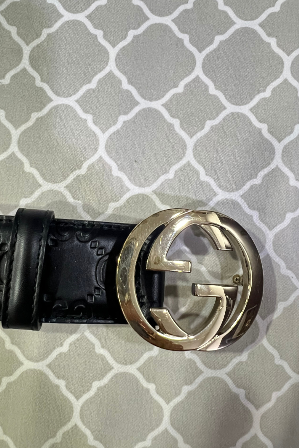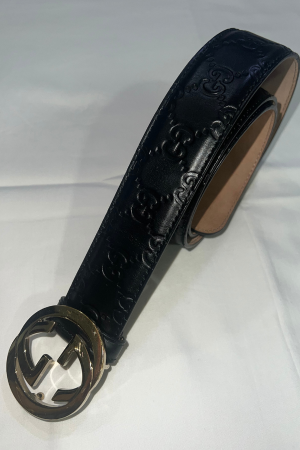 Description: A true wardrobe staple, this black Guccissima leather belt is all about understated luxury. The signature interlocking G buckle adds just the right amount of flair, making it the perfect go-to for everyday wear.