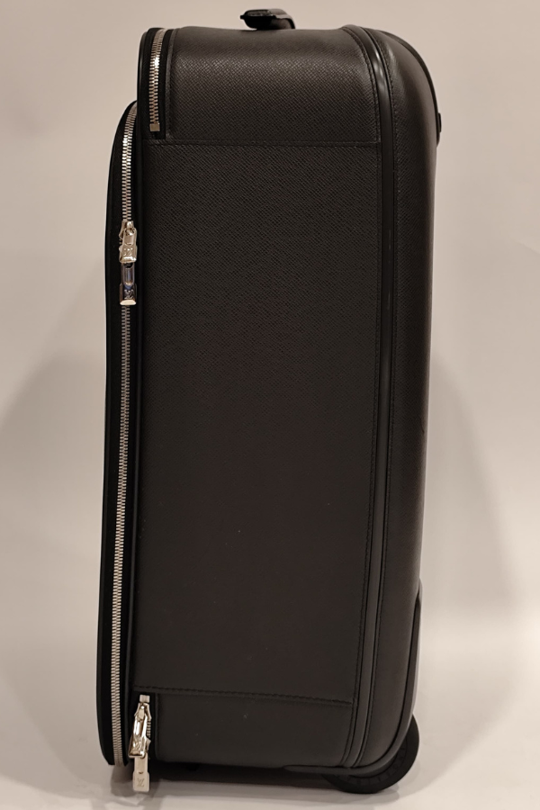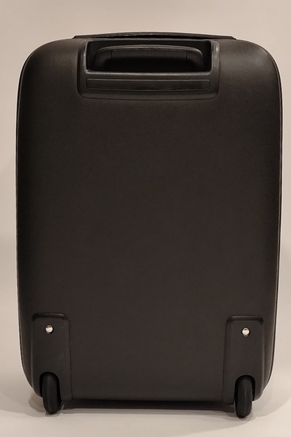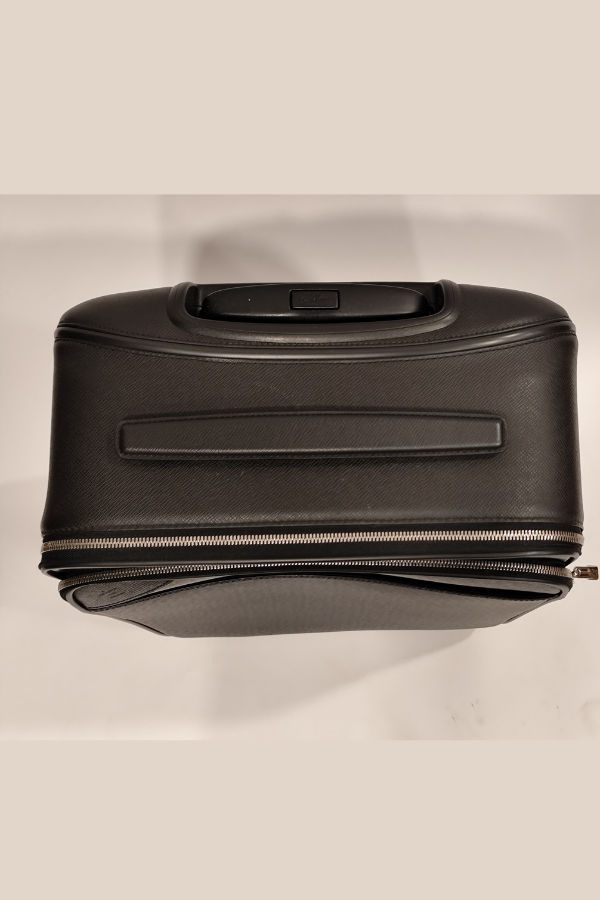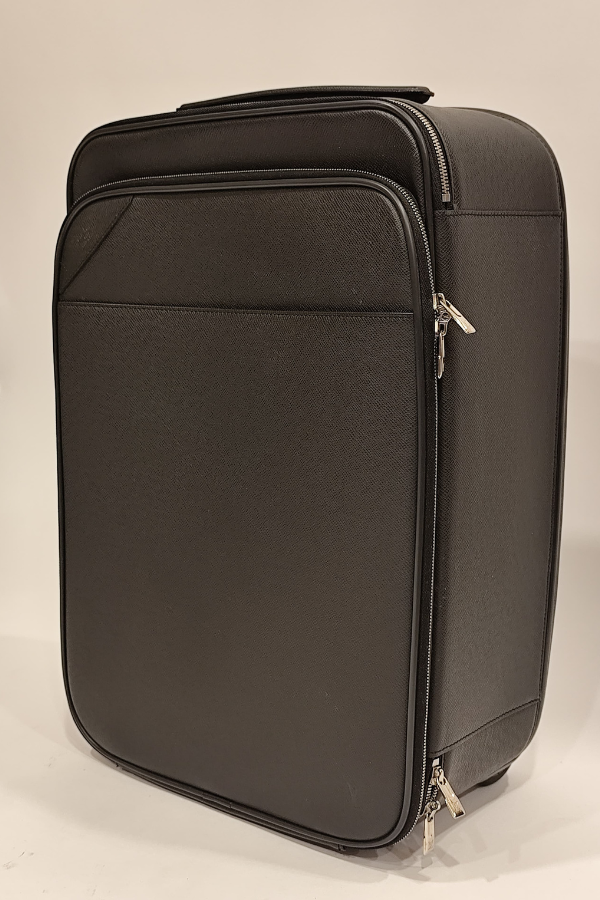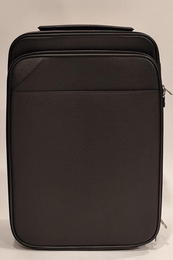 Description: TThis Pegase Legere 50 Business luggage from Louis Vuitton is super sturdy, practical, and stylish for long vacations and traveling. Crafted from black Taiga leather, this luggage bag displays silver-tone fittings, a trolley handle, and a neat nylon-lined interior. For convenience and easy travels, this Louis Vuitton creation is the best buy.