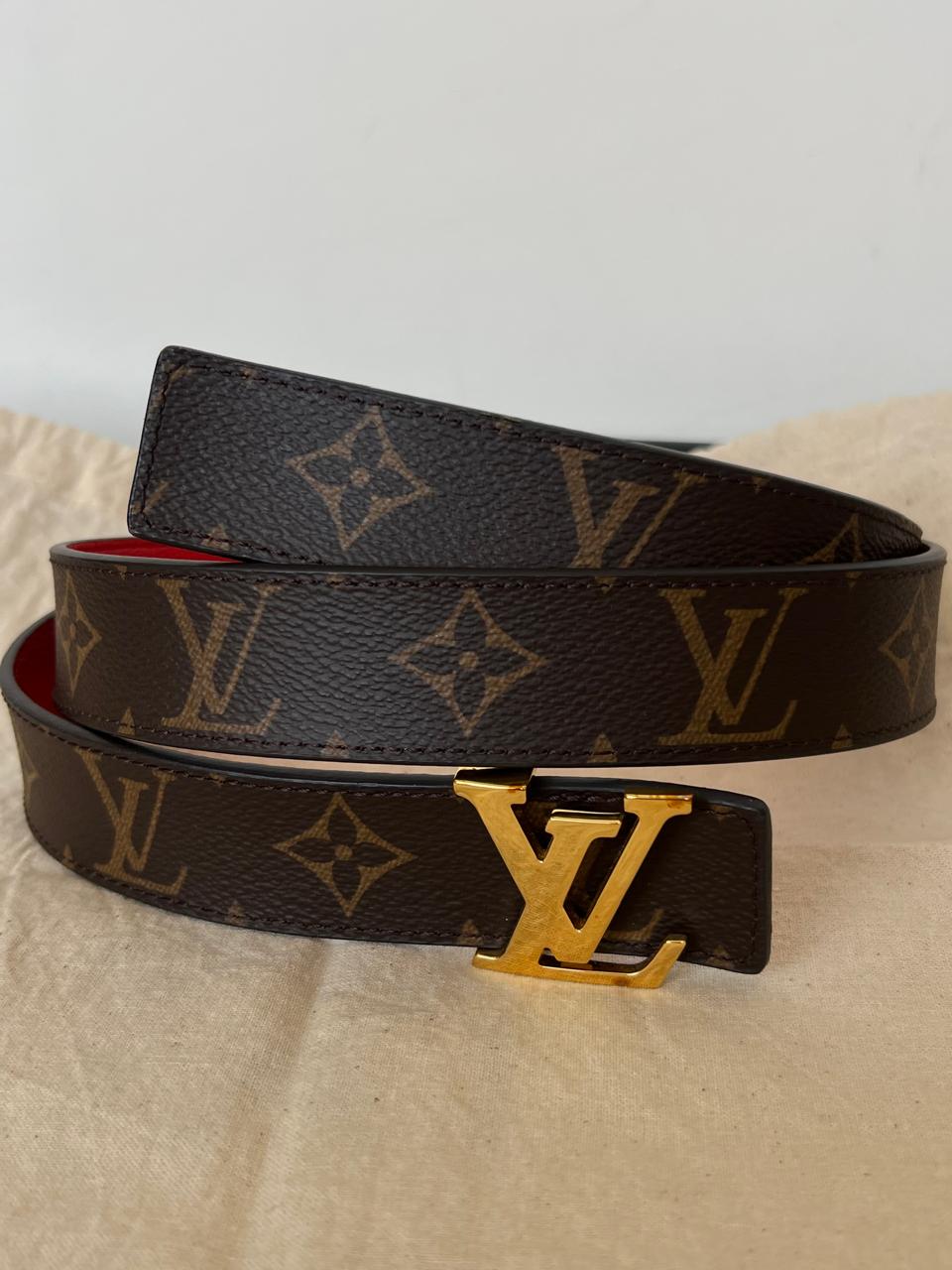 Description: The LV Initiales reversible belt features the iconic Monogram canvas on one side and plain calf leather on the other. It is topped with a gleaming LV Initials gold-color buckle for an eye-catching statement. This versatile accessory complements other items from the Leather Goods Collection.