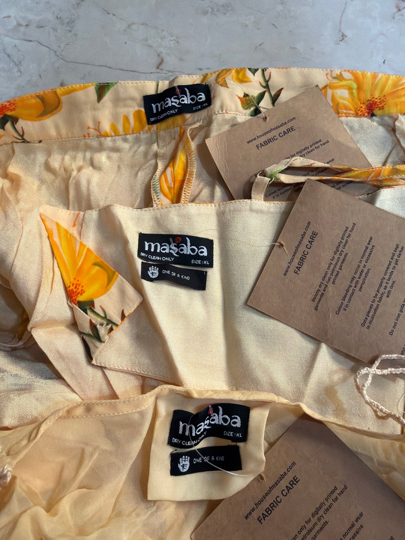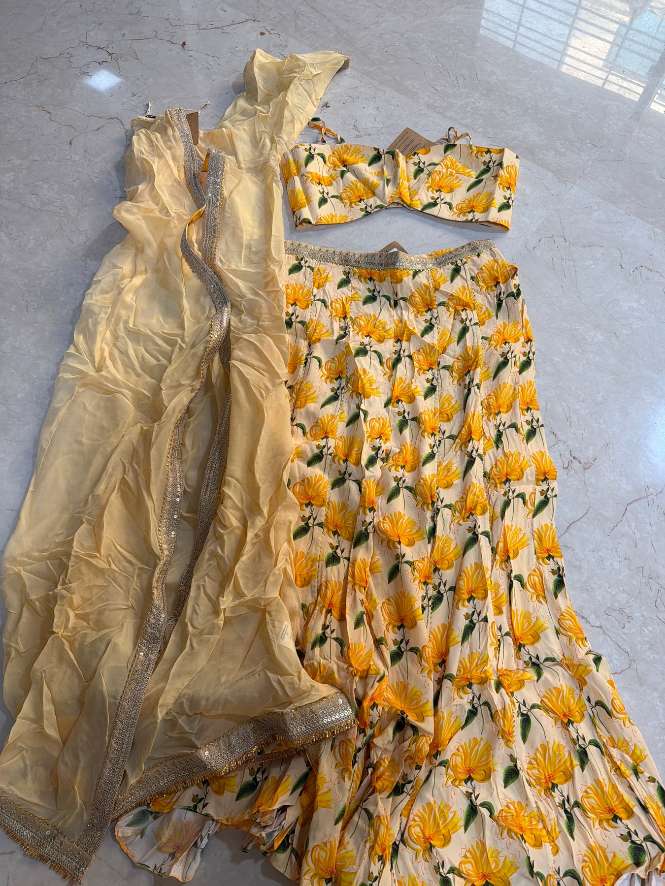 Description: Floral-printed co-ord set featuring a fitted blouse and flowy palazzo pants, paired with a sheer long jacket—an effortless blend of contemporary elegance and summer-ready charm.
